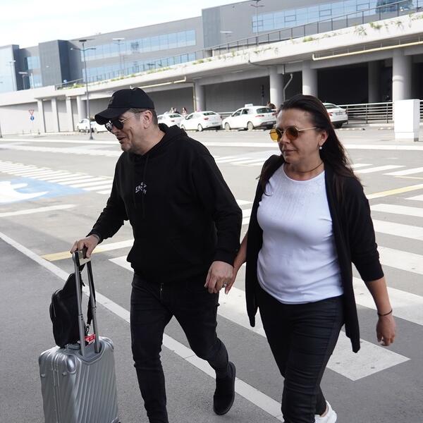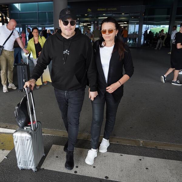 Aco i Biljana su bili ležerno obučeni, baš kako i treba kada se putuje avionom.