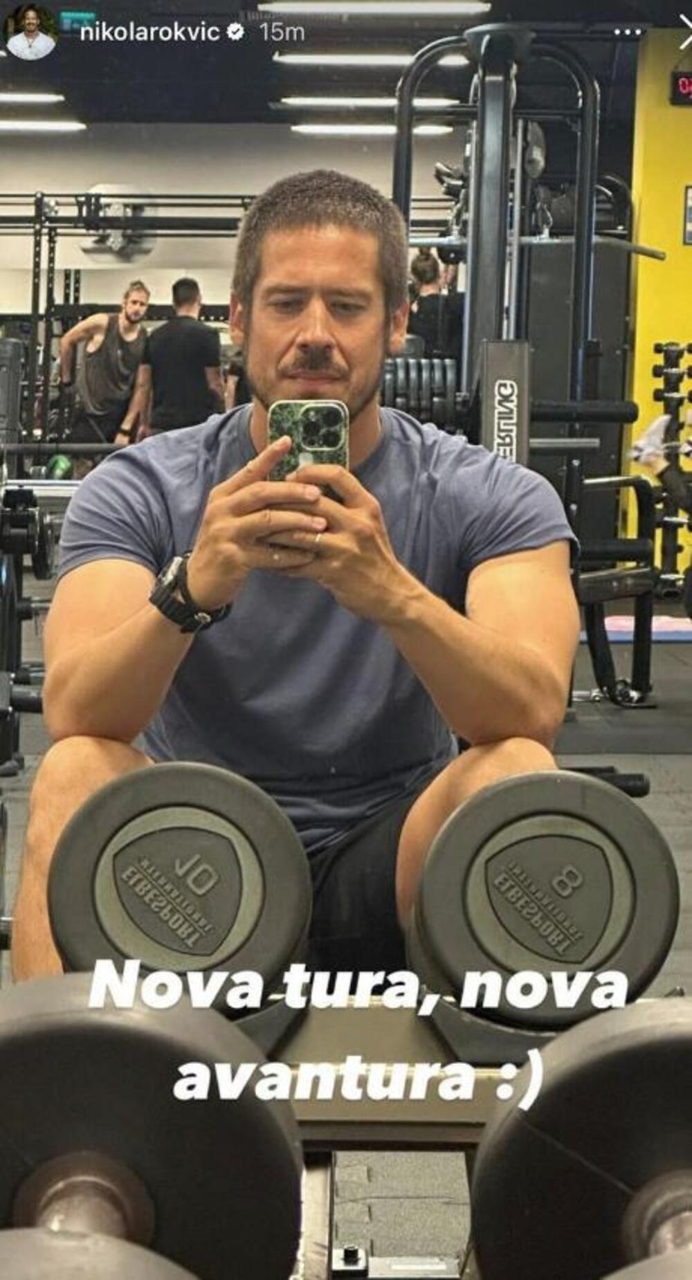 - Nova tura, nova avantura - napisao je Rokvić i pokazao mišićave ruke i zategnuto telo, a sve to u pauzi od dizanja tegova.