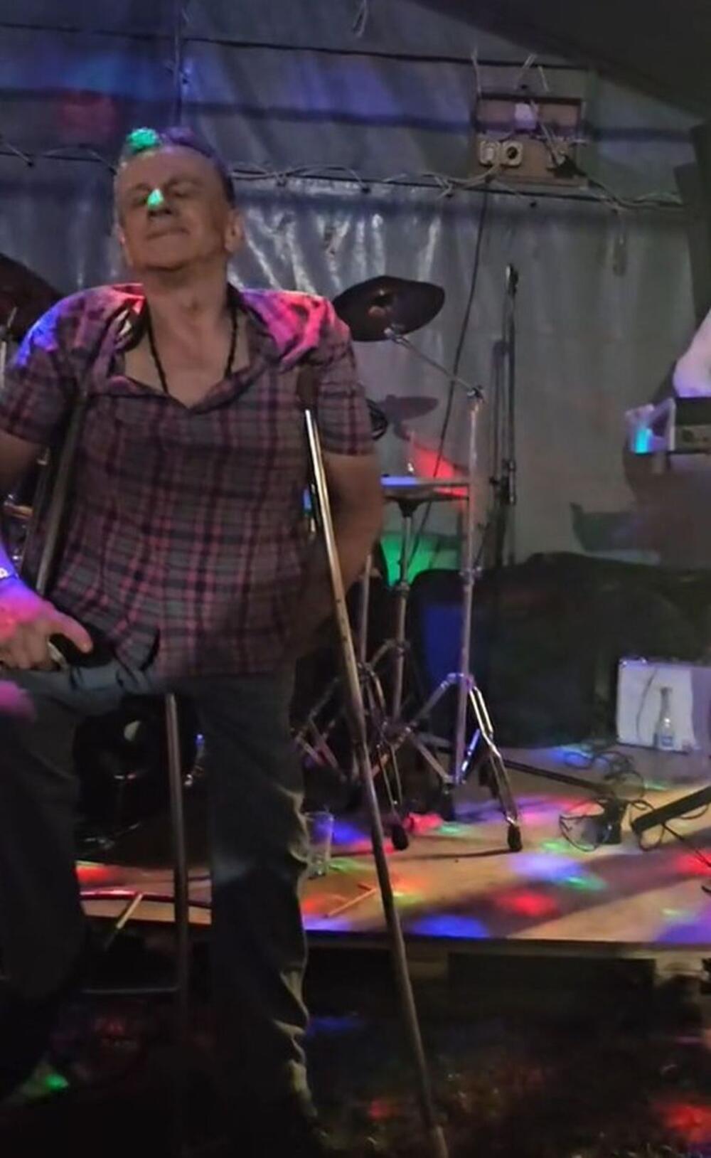 Kako se može videti, Srećko je pevao na jednom veselju ispod šatora, a tokom nastupa sedi na stolici i drži štake...