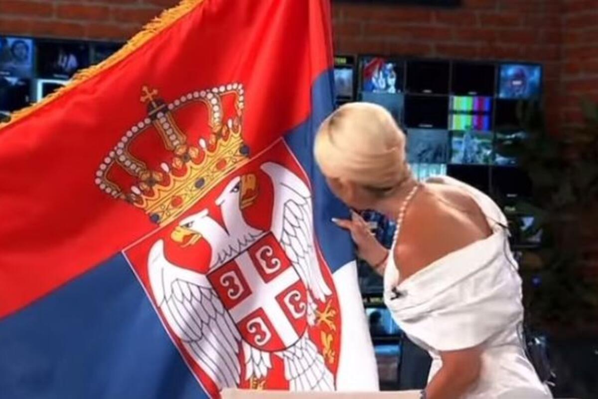 UŠETALA U STUDIO PINKA, PREKRSTILA SE I POLJUBILA SRPSKU ZASTAVU: Voditeljka ZABEZEKNULA NACIJU, sve je išlo UŽIVO
