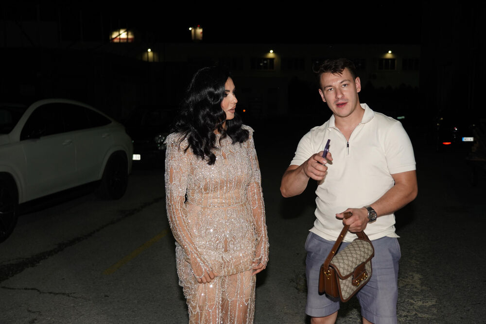 Pevačica je nosila elegantnu providnu haljinu sa kristalima i izgledala je kao da je stigla sa crvenog tepiha. Muki je bio u sportskom izdanju, a kacenat je svakako bio na njegovoj dragoj ženi.