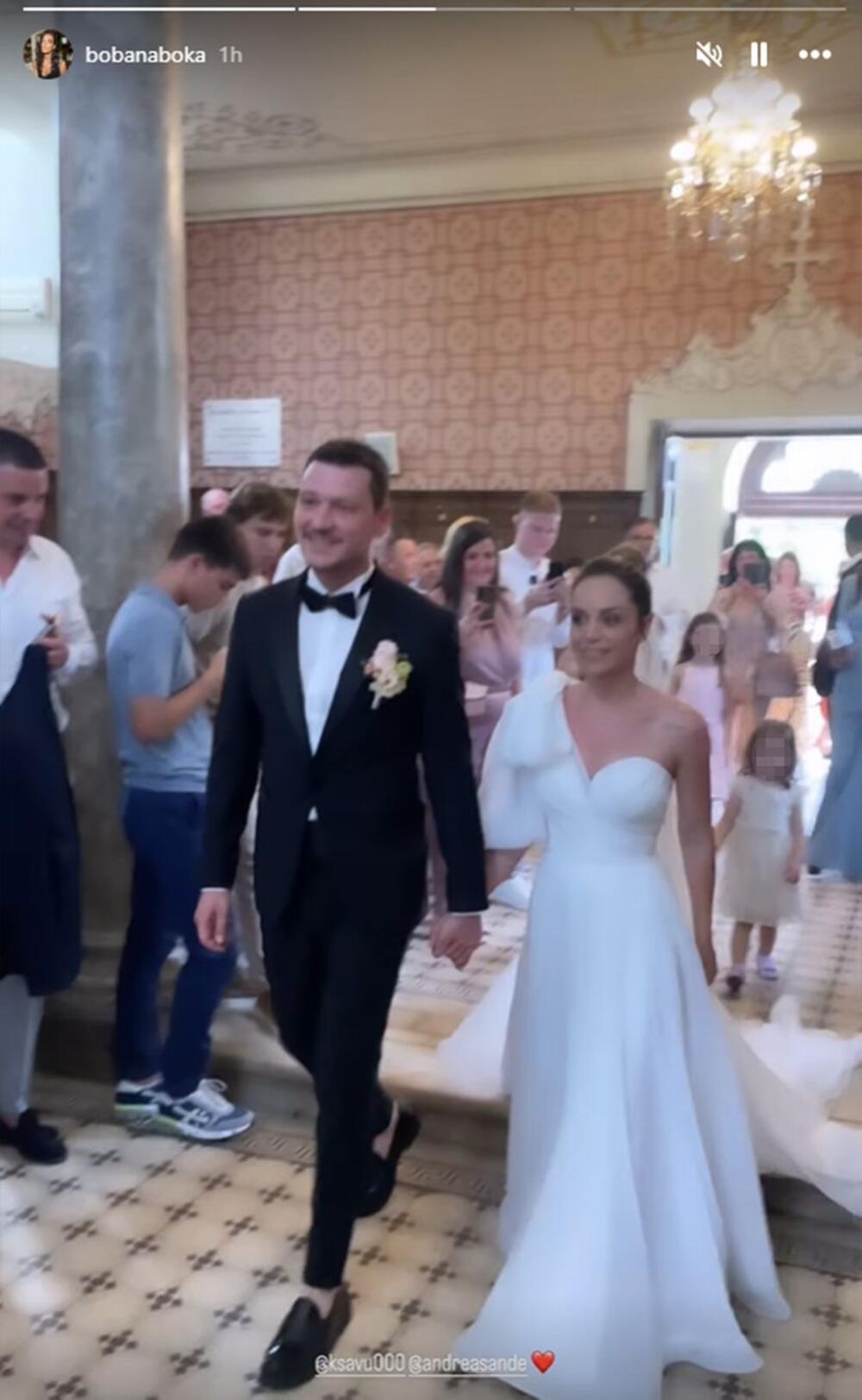 Lepa partnerka našeg muzičara, Andrea, blistala je u zanimljivoj venčanici sa korsetom, te je bila neverovatno graciozna.