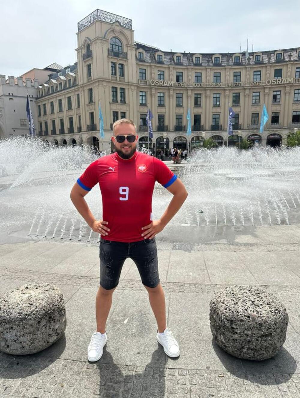 U drugom kolu Evropskog prvenstva u Nemačkoj, fudbaleri Srbije su remizirali sa Slovenijom. Rezultat je bio 1:1 na kraju utakmice. Na tribinama u Minhenu naš tim je bodrio i pevač i nekadašnji učesnik takmičenja "Zvezde Granda" Stefan Babić.