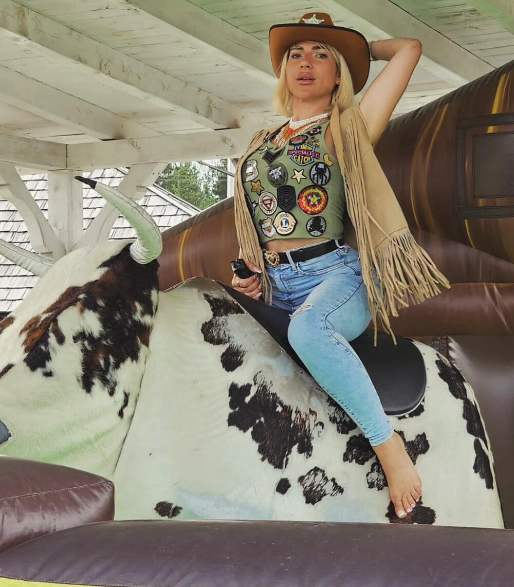 Jovana je obučena kao kaubojka, ali i bosa, sela na bika i zajahala ga u ritmu. Jendom rukom je držala sedlo, a drugom šešir, a verujemo da će snimak koji ćemo uskoro videti postati pravi hit na mrežama.