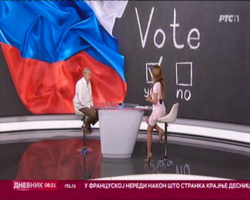 Dok je voditeljka javnog servisa Ivana Tatomir Čkonjević postavljala pitanja bivšem diplomati Zoranu Milivojeviću u jednom trenutku se isključilo svetlo.
