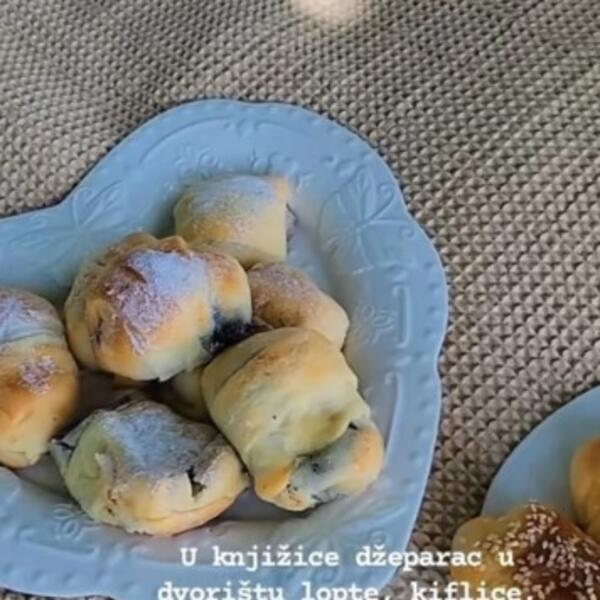 S druge strane, ispod krošnje velikog drveta nalazi se ogromno ćebe za odmor, a Olivera je uslikala i domaće kiflice koje je napravila.