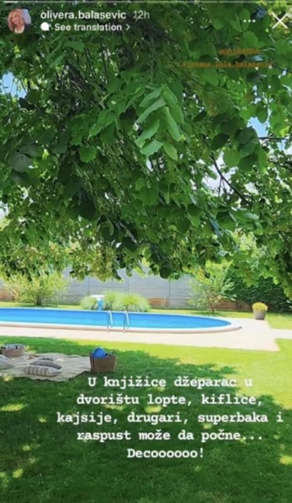 Olivera je na Instagramu objavila nekoliko fotografija iz prostranog dvorišta