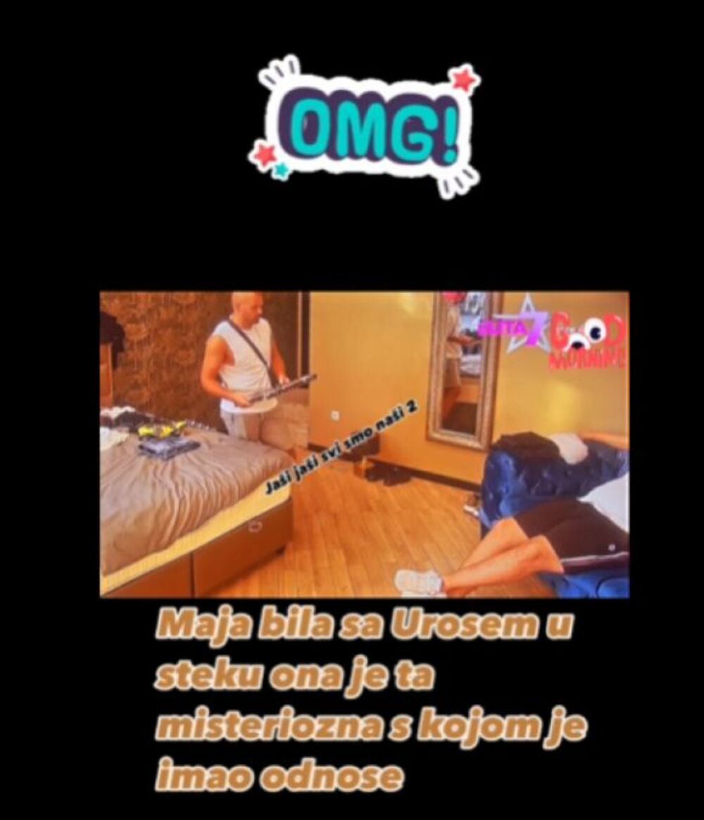 Na jednoj Instagram stranici koja verno prati dešavanja u rijalitiju objavljen je razgovor Uroša i Zole, na kom se čuje da je Uroš navodno sa Majom Marinković imao odnose, i to u šteku gde ih ne snima kamera.