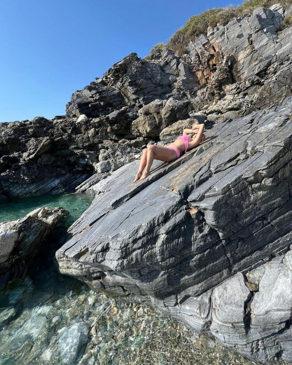 Na njoj je poznata voditeljka u pink bikiniju. Suzana se ležerno sunča na stenama, a kroj bikinija je takav da svi njeni atributi dolaze do izražaja. Voditeljka nije otkrivala previše detalja o tome sa njim uživa na moru, ali se čini da uživa u svakoj sekundi.