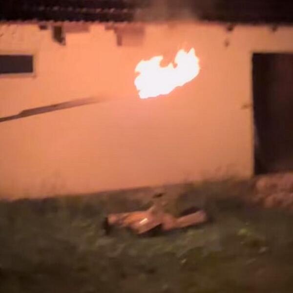 Ona se usnimila dok je veliku kocku sunđera polivala benzinom, azatim i zapalila, nakon čega je kućicu u kojoj su opasni insekti napravili gnezdo, potpuno spalila.