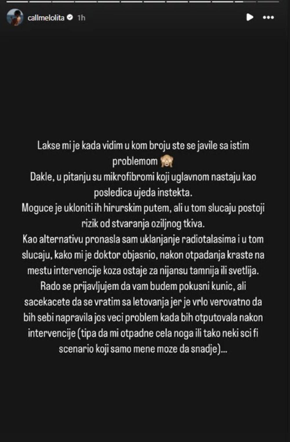 Naime, Jovana je na svom instagram nalogu objavila fotografiju na kojoj se vidi tamna fleka koju ima na nozi.