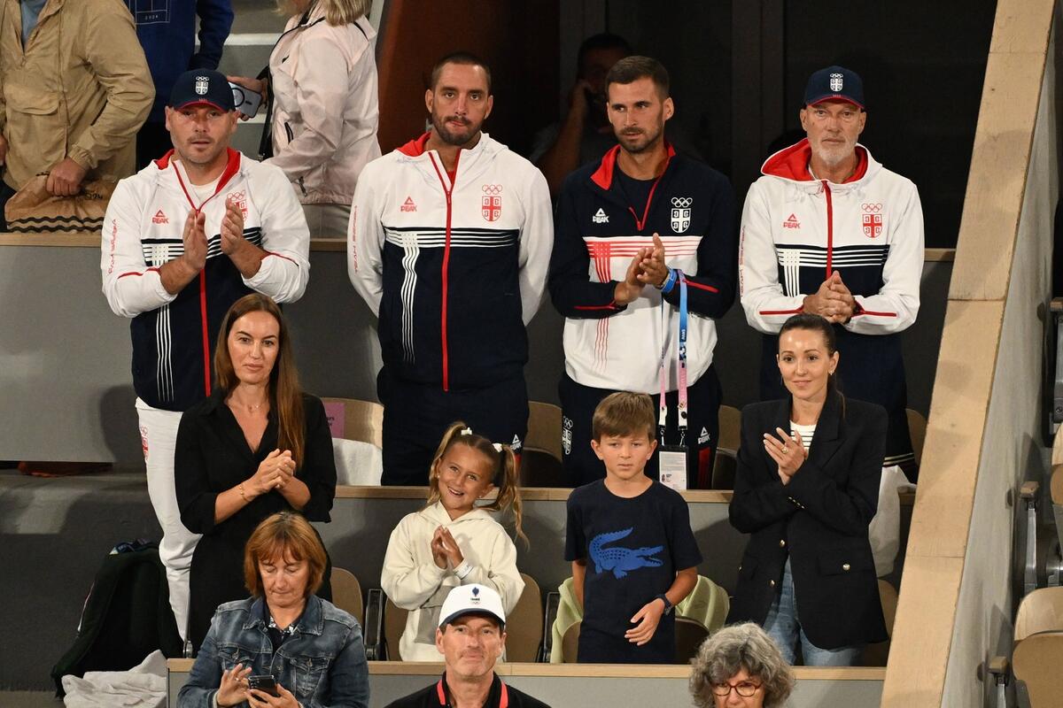 Novak Đoković ima jaku podršku u Parizu, pa su se u njegovoj loži našli supruga Jelena Đoković, deca Stefan i Tara, aktuelni saradnici Boris Bošnjaković i Karlos Gomez Erera, ali i selektor Dejvis kup reprezentacije Viktor Troicki.
