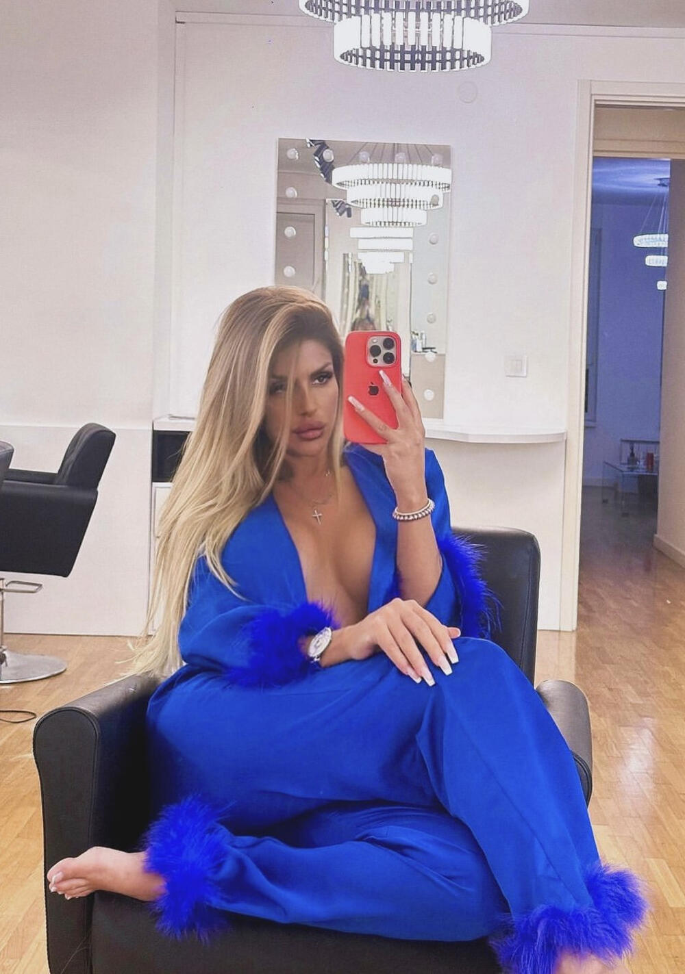 Ona je otišla u frizerski salon i pozirala ispred ogladala u vrelom izdanju.