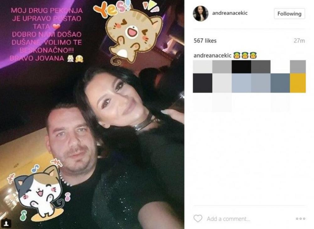 "Moj drug upravo je postao tata! Dobro nam došao, Dušane, volimo te beskonačno! Bravo, Jovana", napisala je pevačica.