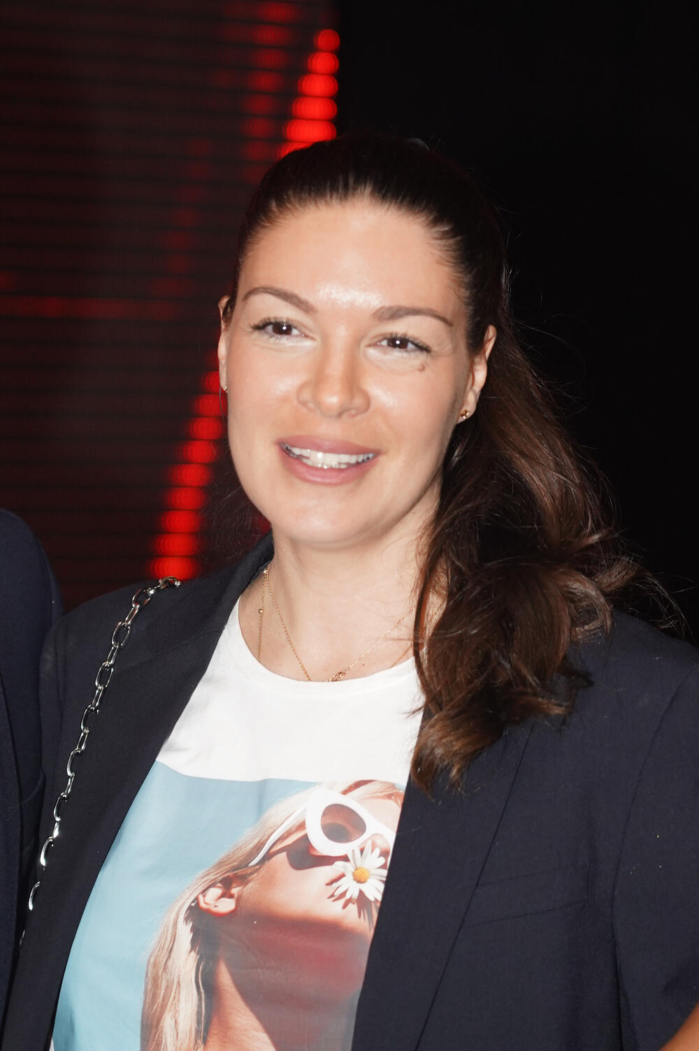 Sanja je bila u opuštenom izdanju, a kosu je vezala u rep. Voditeljka nije skidala osmeh sa lica, i rado je pozirala okupljenim fotografima.