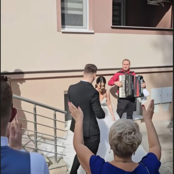 Muzika se orila ispred zgrade u kojoj Aleksandra živi, a ona nije prestajala da cupka dok je silazila niz stepenice. Stevan joj je odmah prišao, te su jedno drugo čvrsto zagrlili, a pao je i po koji poljubac.