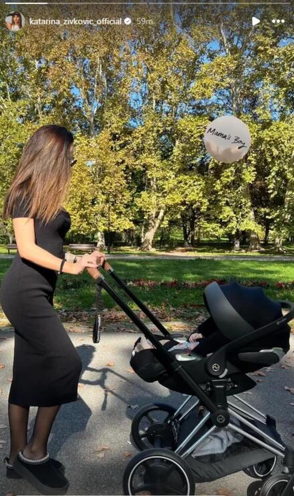 Naime, pevačica je podelila trenutak iz šetnje sa sinom, a tom prilikom ponosna mama blistala je u uskoj crnoj haljini koja je oslikavala njenu figuru. Kako možemo primetiti, Katarina izgleda sjajno nakon porođaja, a koliko joj majčinstvo prija svedoči i široki osmeh na njenom licu.