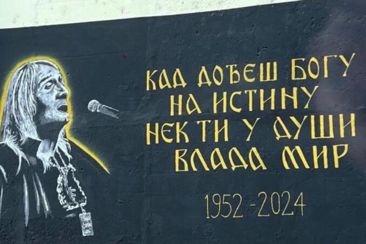 Na njemu se vidi pokojni roker u svom prepoznatljivom izdanju s koncerta, dok na zidu piše: "Kad dođeš Bogu na istinu, nek ti u duši vlada mir! 1952-2024"