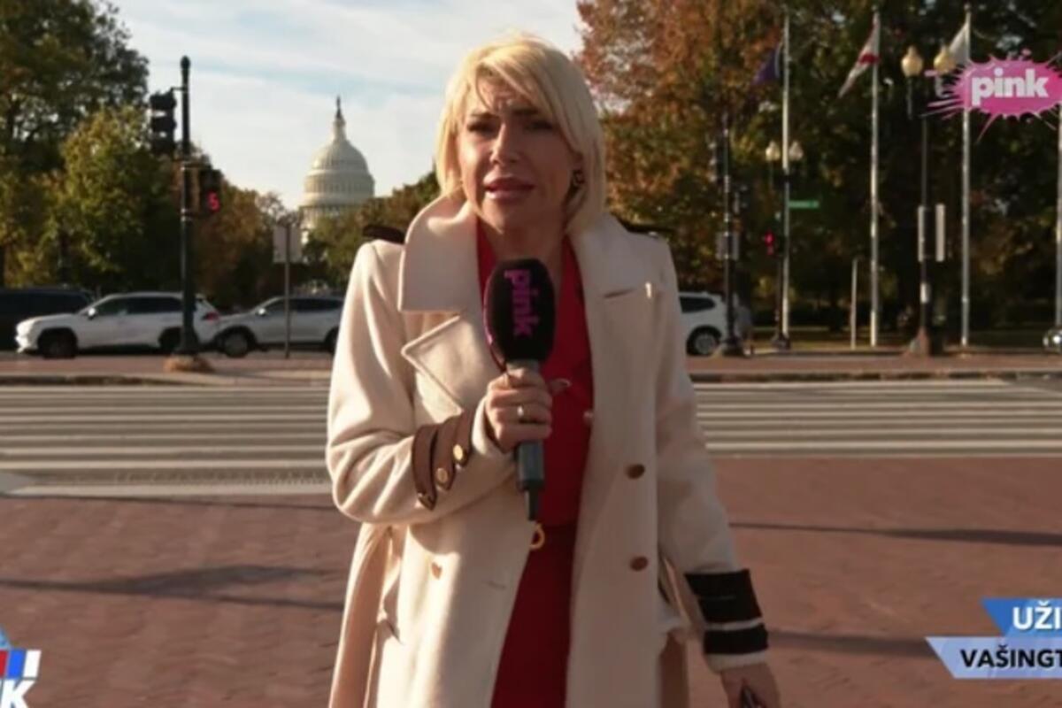Voditeljka se danas uključila u Nacionalni dnevnik iz Vašingtona, ispred Kapitol hila i gledaocima Televizije Pink prenela deo atmosfere u Americi, uoči možda najvažnijih izbora u istoriji Amerike.