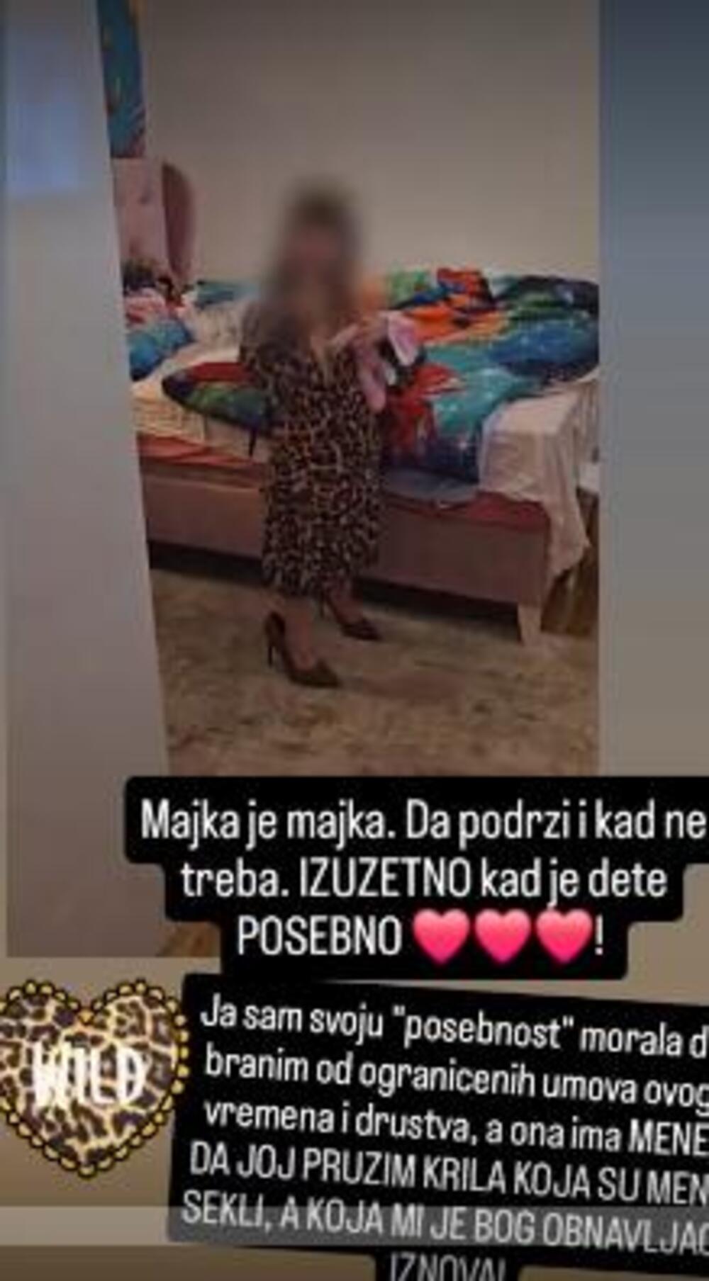 - Majka je majka. Da podrži i kada ne treba. Izuzetno, kad je dete posebno. Ja sam svoju posebnost morala da branim od ograničenih umova. A ona ima mene da joj pružim krila koja su meni sekli, a koja mi je bog obnavljao iznova - napisala je Jovana uz snimak ćerke.