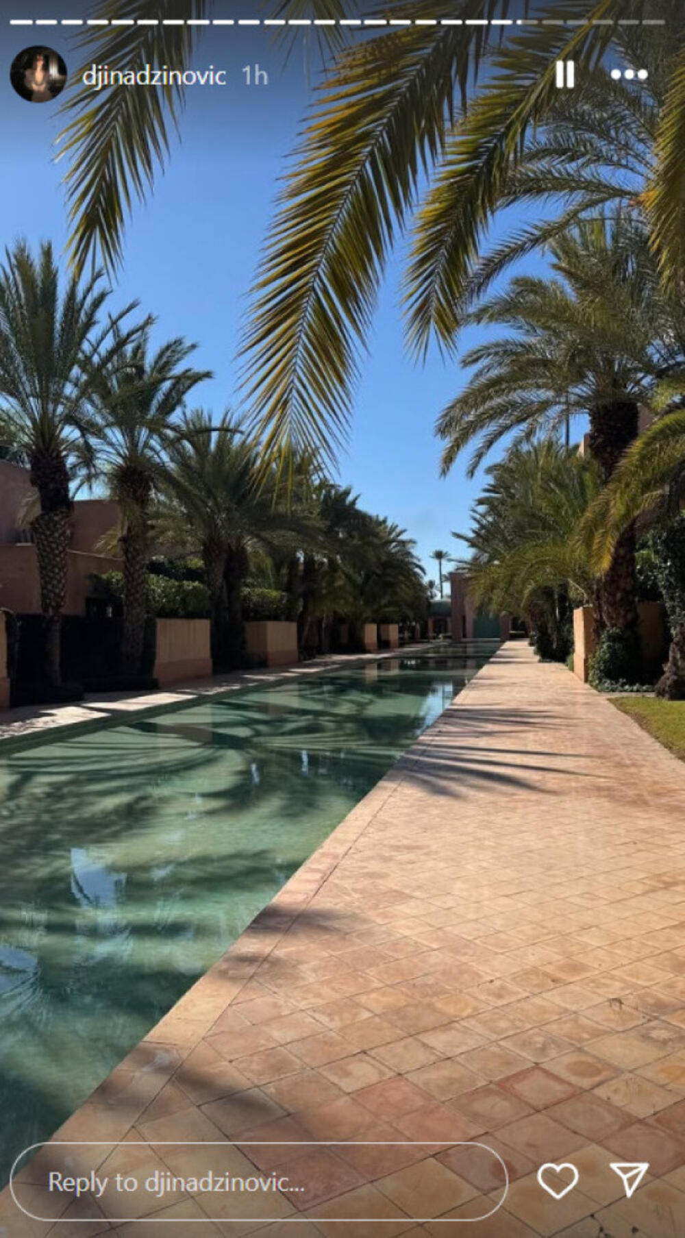 Đina je otkrila da se trenutno nalazi u Marakešu, gde uživa u šarenim pejzažima, a posebno je zaintrigirala pratioce slikama sa vožnje kamilama kroz pustinju.