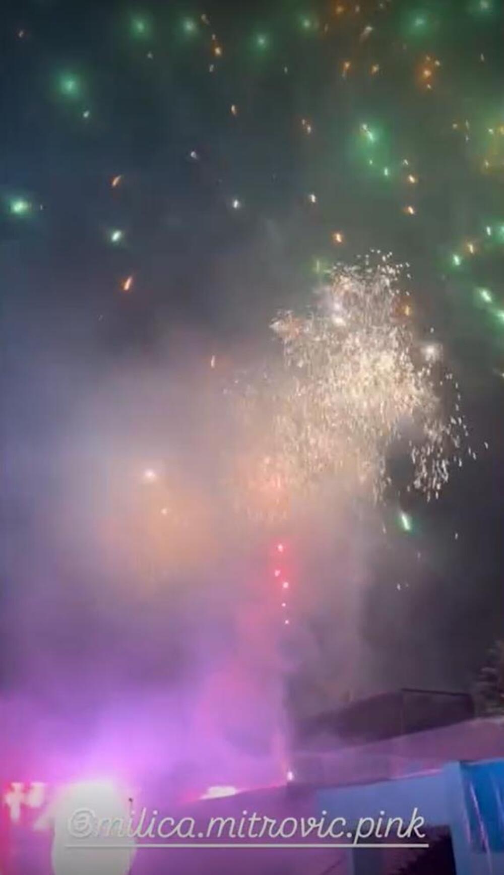 Dok je ona duvala svećice, vatrometi i prskalice su bile postavljene oko nje te su je obasjale u mraku, a Željko je sve vreme stajao pored svoje mezimice i grlio je.