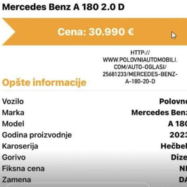 Na oglasu je navela da je auto 2023. godište i da ga prodaje po ceni od 30.990 evra.