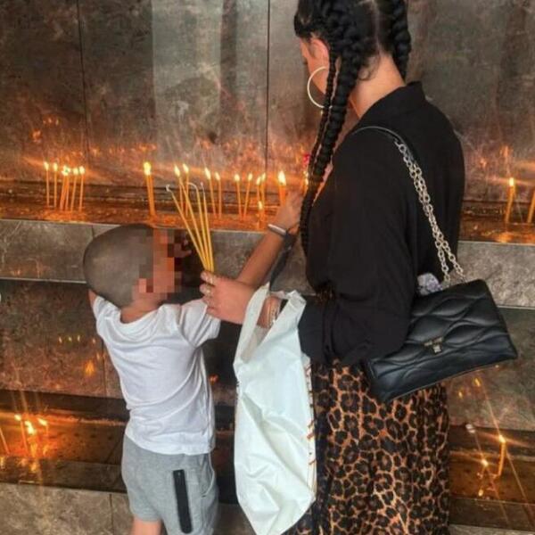 Nakon izlaska iz manastira, zajedno sa sinom zapalila je i sveće, dok su pratioci primetili kako dečaka uči pravim vrednostima.