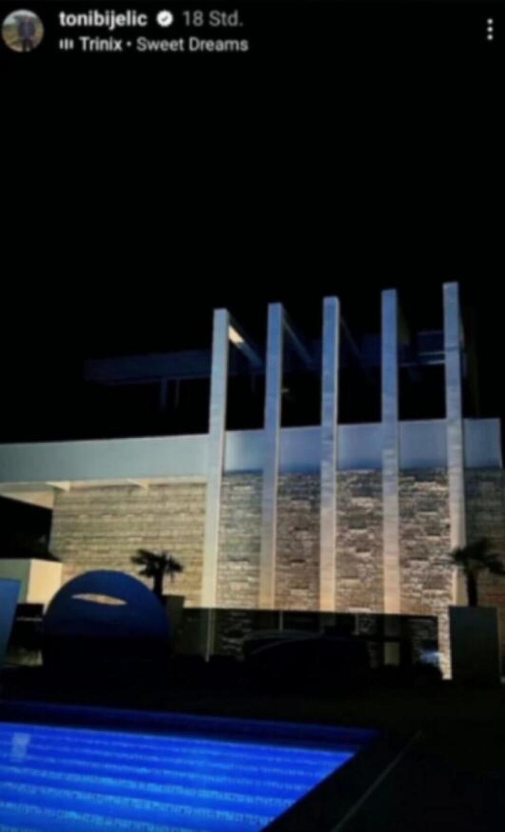Ogromno dvorište, fontana, spa zona sa bazenom, saunom i delom za fitnes krase velelepnu nekretninu za koju je biznismen, prema pisanju medija, izdvojio pozamašnu sumu novca. Prostrana terasa je kao stvorena za uživanje, a tu se nalazi i poseban „zid tuš“ koji noću kada se upali, zajedno s ambijentalnom vrtnom rasvetom, stvara poseban ugođaj. U prizemlju se nalazi i spavaća soba sa kupatilom, kao i vinski podrum, pa se može zaključiti da Toni Bijelić nije štedeo.