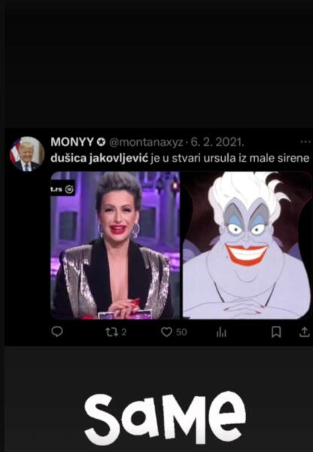 "Jača od Kardašijanki, menja lični opis svake godine", "Hana Hadžiavdagić i Dušica Jakovljević dve najiritantnije osobe", "Boki 13 izgleda kao kad bi Tijana Dapčević i Dušica Jakovljević imale dete", samo su neki od komentara na društvenim mrežama, koje je voditeljka i sama podelila.