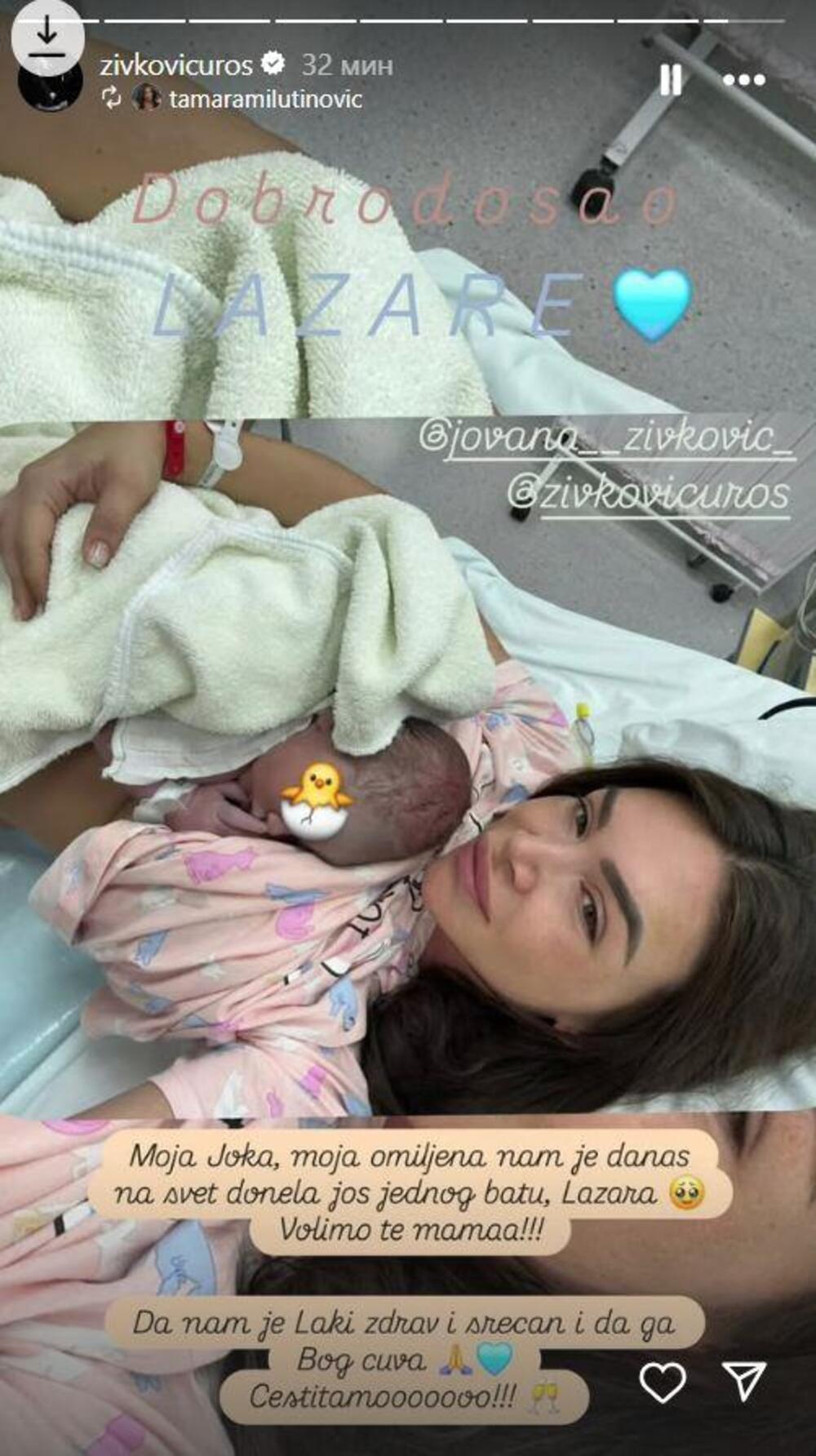 Pevač Uroš Živković i njegova supruga Jovana danas su dobili sina kome su dali ime Lazar, a tim povodom organizovano je slavlje u jednom beogradskom lokalu, gde su se okupile brojne javne ličnosti kako bi čestitale srećnim roditeljima.