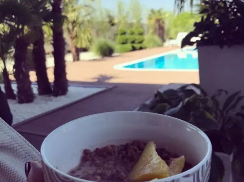 Golupčići su započeli dan zajedničkim doručkom kraj bazena, što je pevačica pokazala na Instagramu.