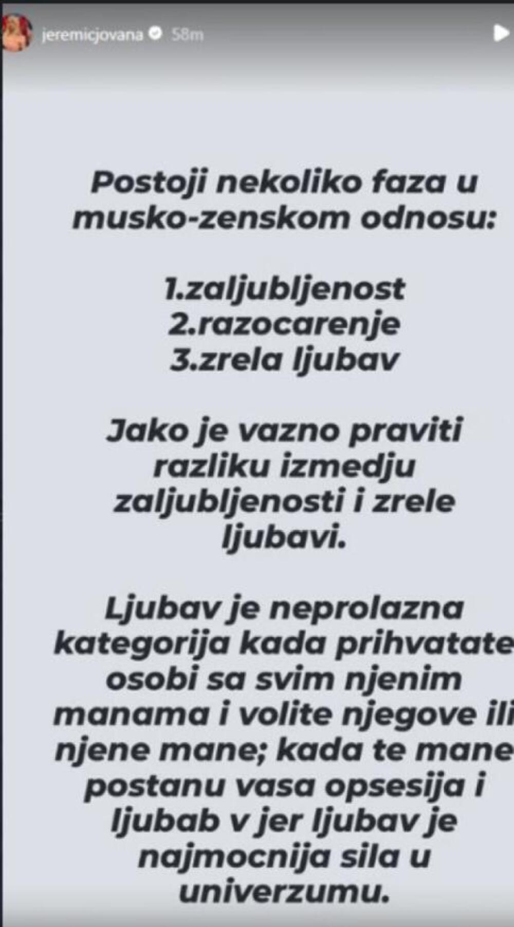 Jovana se raspisala o temi ljubavi, za koju mnogi sumnjaju da se odnosi na bivšeg partnera Dragana.