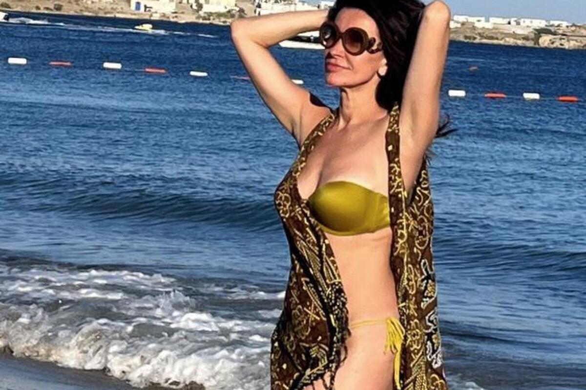 Snežana je pozirala u crnom minijaturnom bikiniju, a kombinaciju je upotpunila i šarenim ogrtačem, te iako je bila u moru nije pokazala previše.