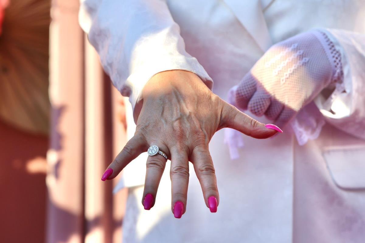 Nakon gostiju koji su se smestili u svoja mesta i s radošću isčekivali mladence, oni su se pojavili pred gostima, a onda su stali i pred medije. Osim njihovih stajlinga svi su odmah primetili da na ruci estradne muzičke zvezde sija dijamant.