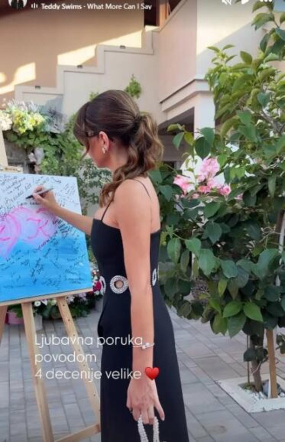 Prisutni su u dvorištu vile u Krnjači morali da ostave ljubavne poruke, pa je i Sanja Marinković to učinila.