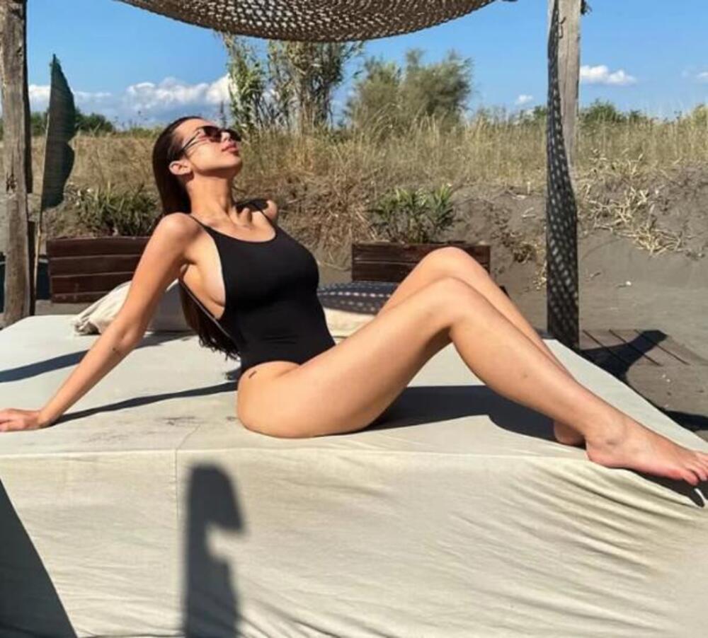 Sad je pokazala kako pozira na plaži, a na krevetu je bila u jednodelnom, crnom kupaćem kostimu.