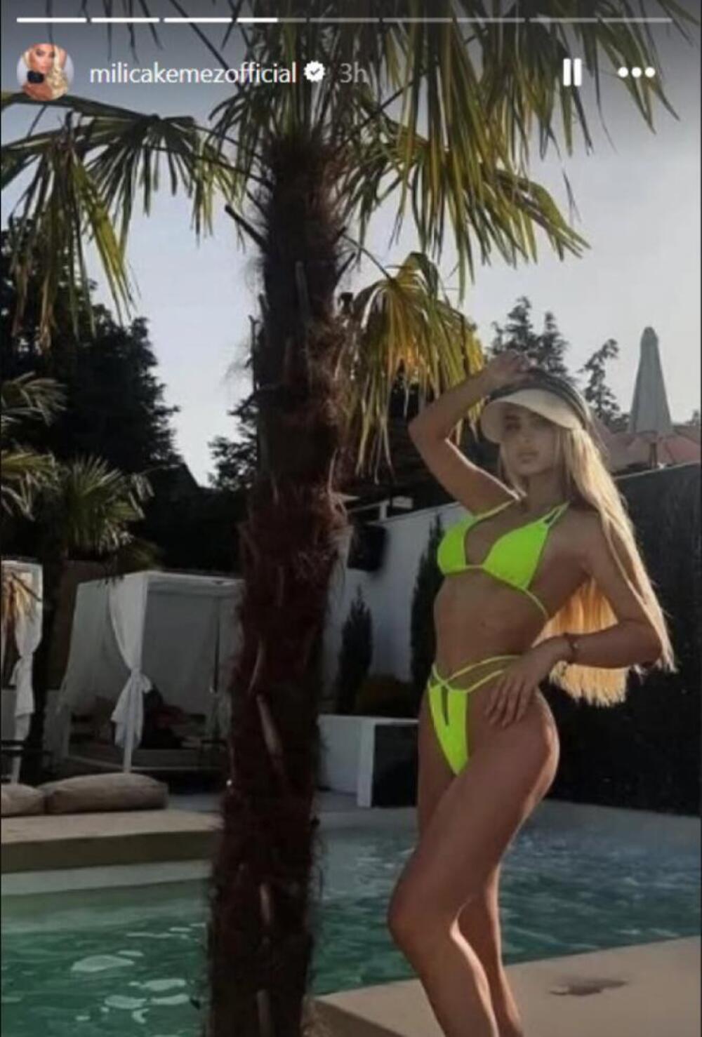 Ovaj put Milica je objavila fotke sa bazena gde pozira u fluorescentnom bikiniju.