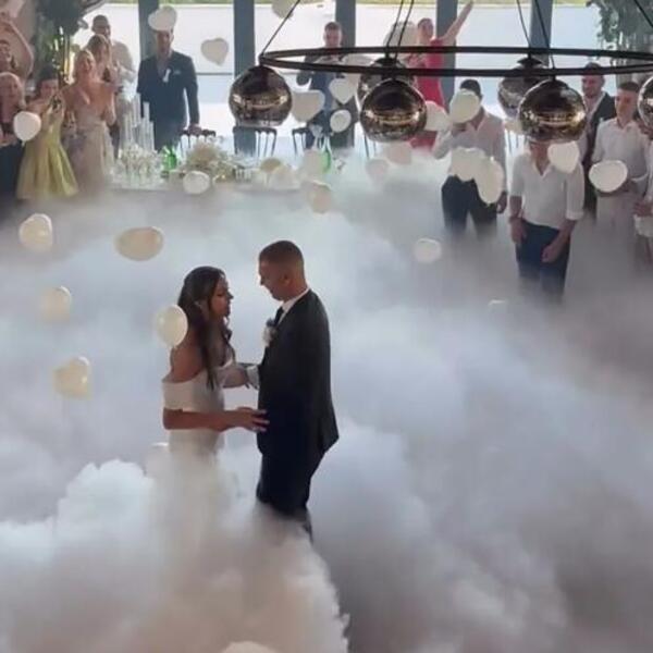 Kad su mladenci zaplesali, cela sala je ustala i pozdravila ih gromoglasnim aplauzom.
