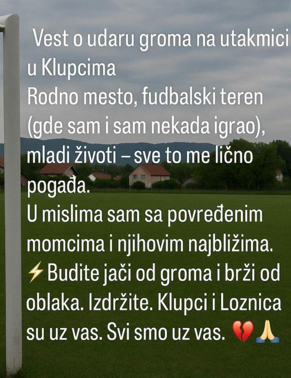 Vest da je grom udario mlade fudbalere iz Loznice duboko je potresla javnost.