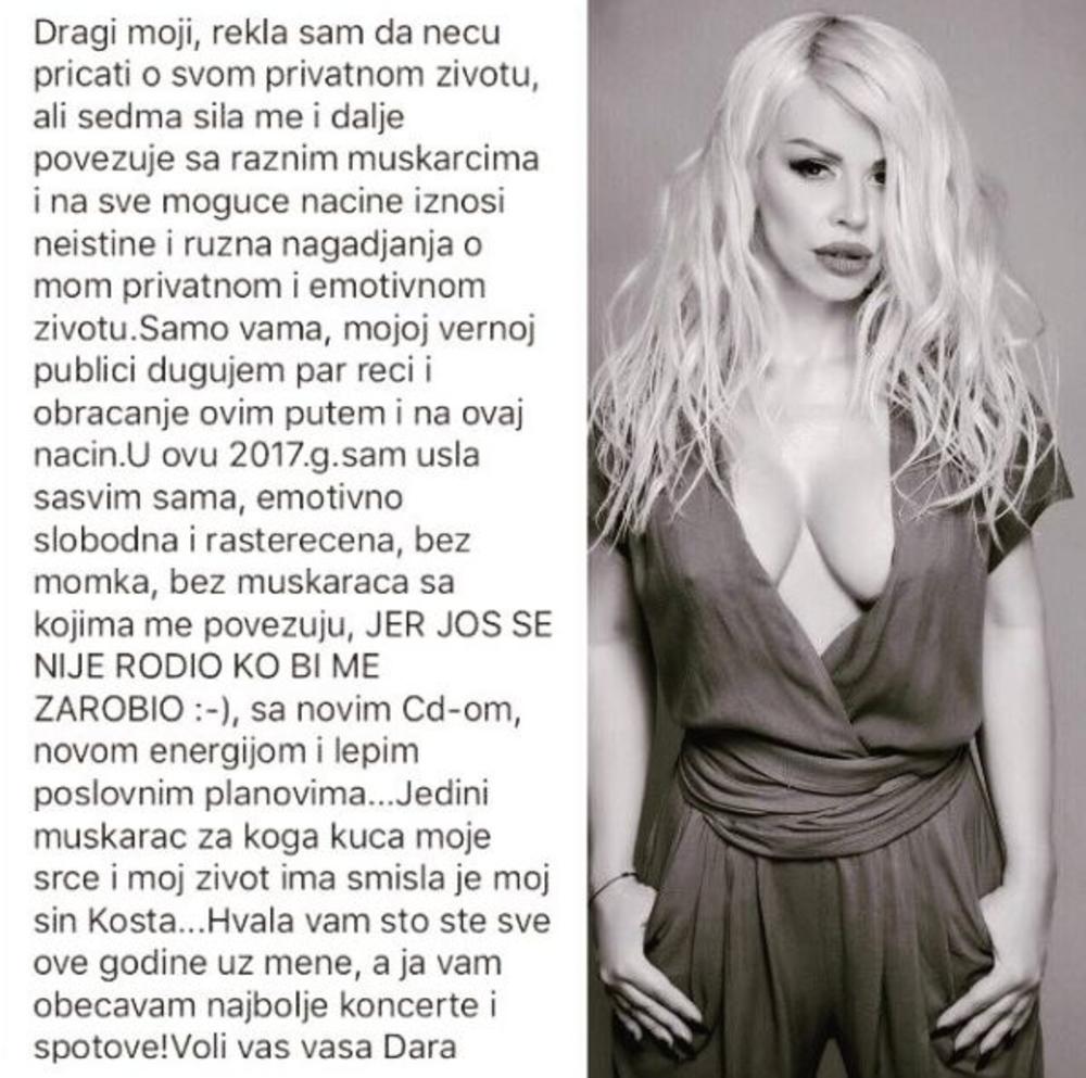Isprovocirana ko zna čime, Dara Bubamara danas je objavila saopštenje za svoje fanove u kom demantuje da ima dečka. Pogledajte šta je napisala: