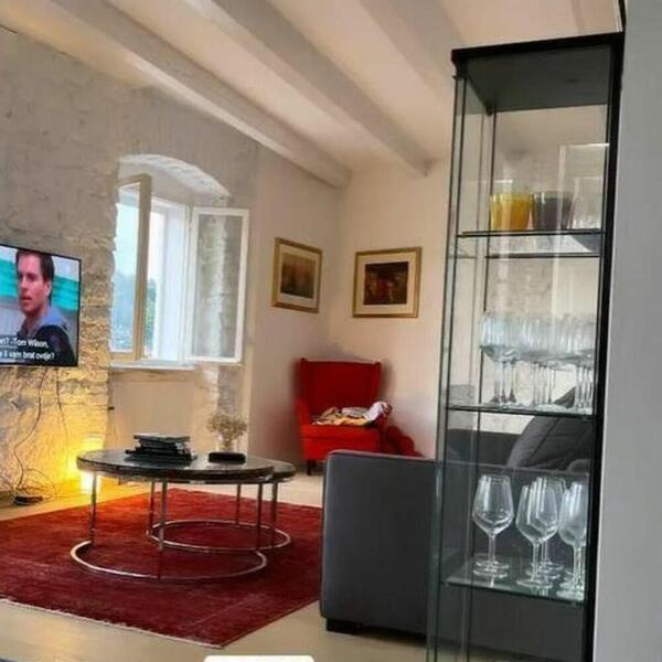Poseban kutak predstavlja i staklena polica za čaše za vino.