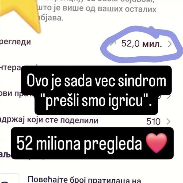 Naime, njene objave su postale viralne, pa je najpre obelodanila da je prešla 52 miliona pregleda, a samo nekoliko sati kasnije pohvalila se novom cifrom – neverovatnih 55,1 milion.
