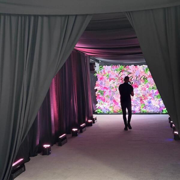 Dekoracija je dovedena do savršenstva – centralni pano sa Tarinim imenom okružen je raskošnim, šarenim cvećem, dok hostese, elegantno obučene u crno, dočekuju goste na samom ulazu. U salu se ulazi kroz dugački "tunel" prekriven crnom zavesom, što je dalo dodatnu notu ekskluzivnosti i glamura.