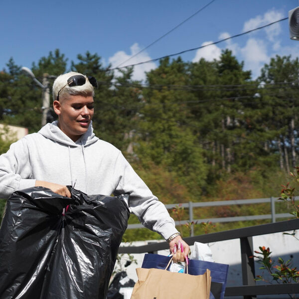 Uroš je viđen kako u jednoj ruci nosi veliki crni džak sa garderobom