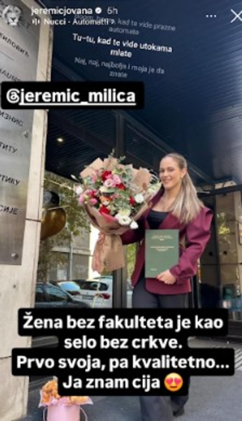 Poznata TV voditeljka Jovana Jeremić ne krije koliko joj je porodica važna, a najnoviji povod za slavlje i ponos došao je upravo iz porodičnih redova, njena bratanica Milica je diplomirala!