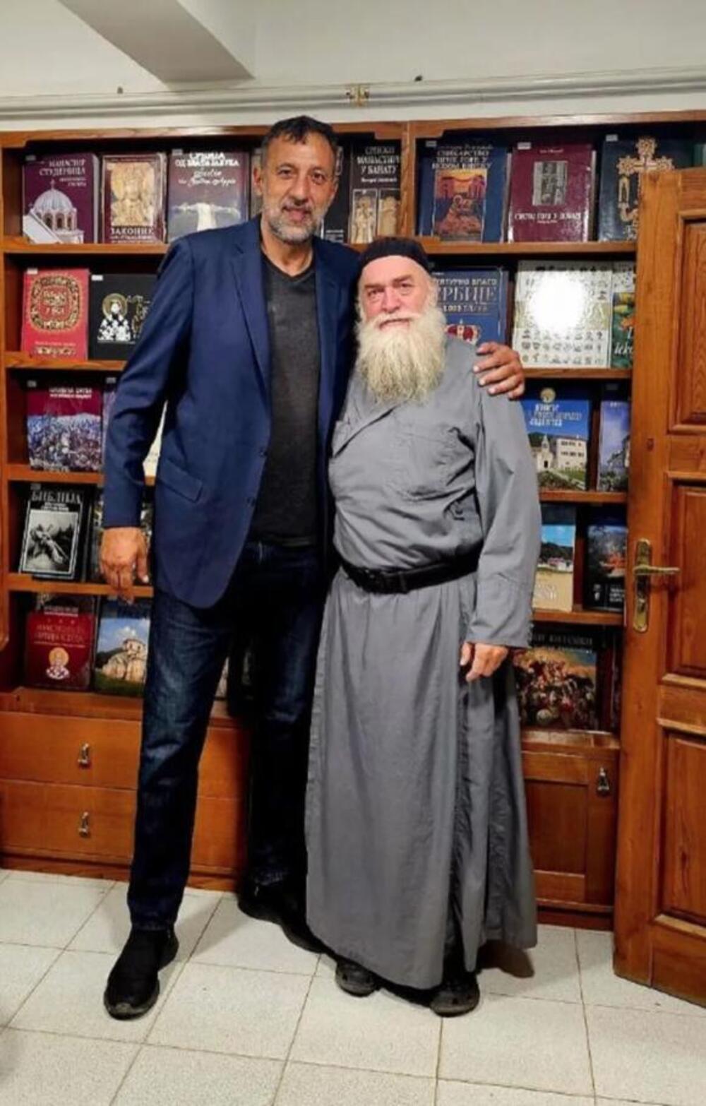 Na njima se vidi Vlada dok spokojno šeta manastirskim dvorištem, u jednostavnom izdanju.