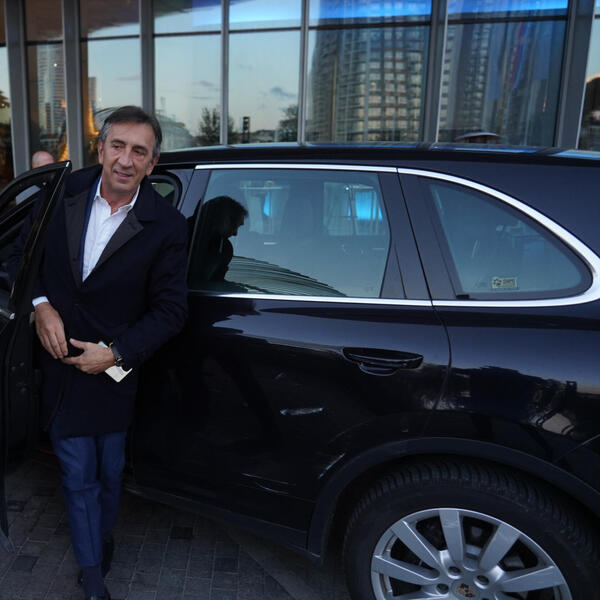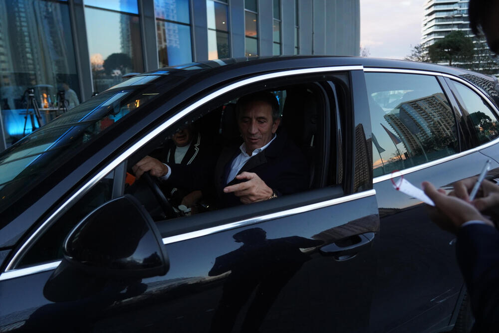 Na sebi je imao belu košulju i crni sako, a fotoreporteri su ga saletali još dok je bio u svojim kolima.