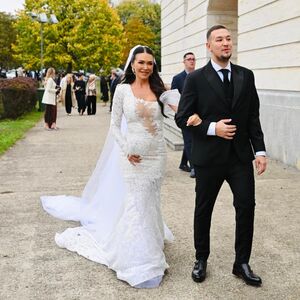 Uroš je za ovaj veliki dan poneo klasičan crni smoking sa usklađenom kravatom i lakovanim cipelama, odišući elegancijom i stilom. Mlada Jovana zablistala je u dugoj venčanici ukrašenoj tilom i čipkom, a imala je i smeliji providni materijal oko dekoltea.