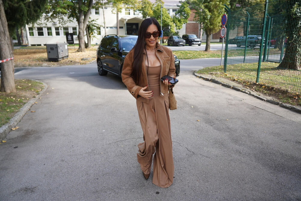 Ceca se danas na snimanju emisije pojavila u braon kostimu koji je uklopila sa jaknom u istoj boji.